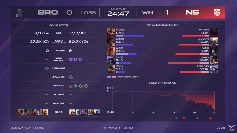 虎扑09月03日讯 【GAME1】BRO蓝色方、NS红色方